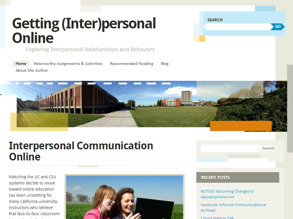 At long last, I have finally executed my plans for my Getting (Inter)personal Online website and blog. AlyssaEspinola.com is now rebranded to feature… me! As narcissistic as this may sound, it makes more sense this way from a professional perspective.
